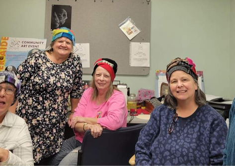 On October 18, 2024 the Fiber Arts group made either a wool hat or a headband. Directions were given for both and all the wool scraps and fleece lining was provided.